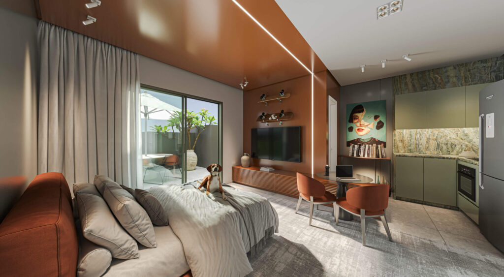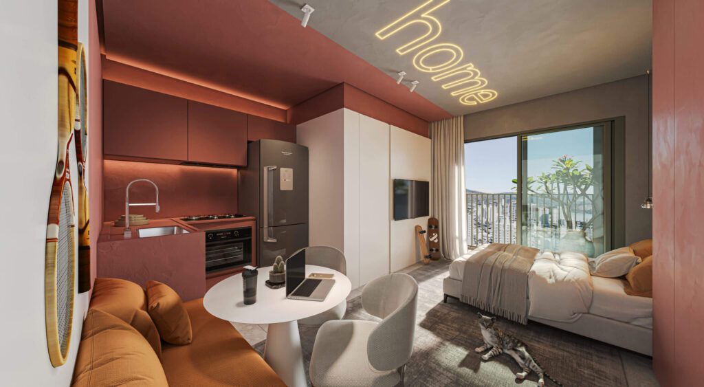 Ele consiste em estúdios compactos e projetados de acordo com as necessidades e demandas atuais do bairro.